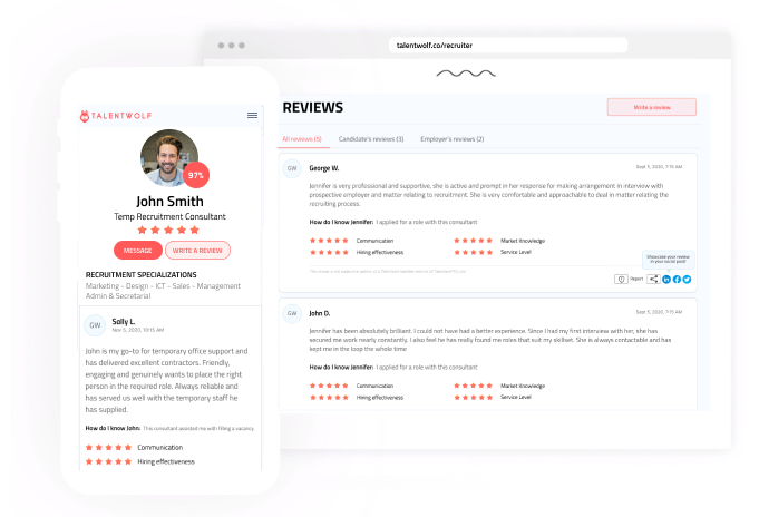 Talentwolf is the all-in-one platform, designed for recruiters and recruitment agencies to collect, monitor and manage trusted reviews. With a quick set-up time and user friendly dashboard, Talentwolf allows you to try the product risk free. Harness the power of online reviews so employers can find you, see what clients think of your service and help build your trusted brand.